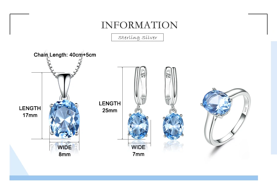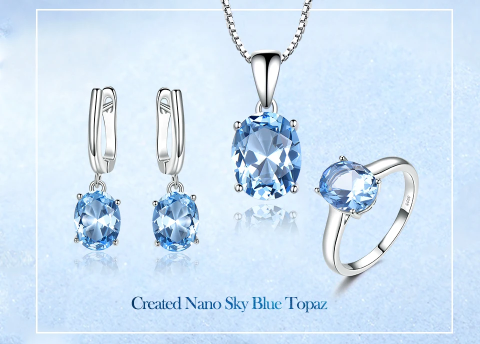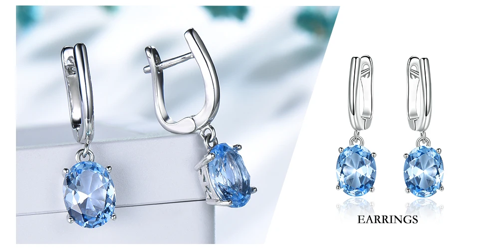 Sky Blue Gemstone Wedding Jewelry Sets for Women 925 Sterling Silver Engagement